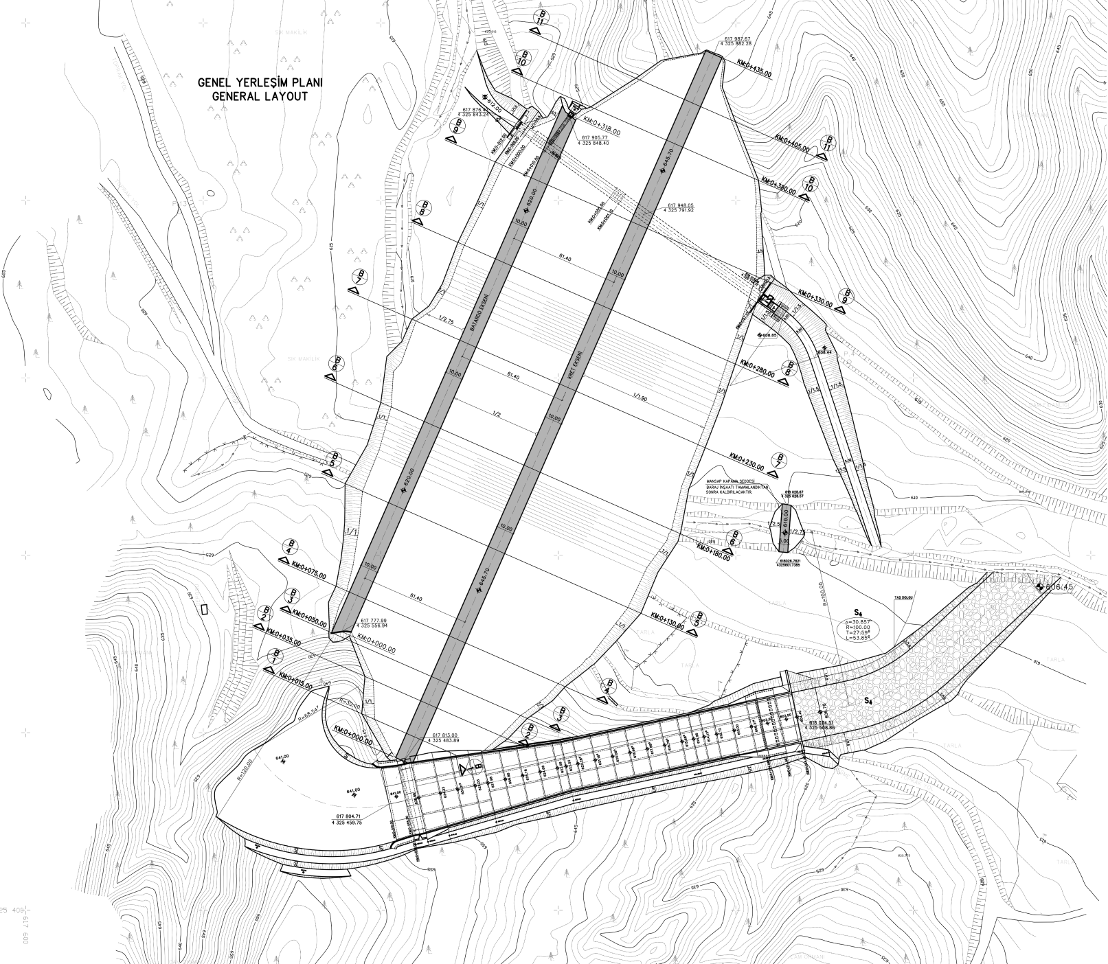 Dam is designed as a clay core rockfill type. Within the scope of the project, dam body and cofferdams, spillway, bottom outlet, diversion conduit, intake structure, downstream channel improvement,